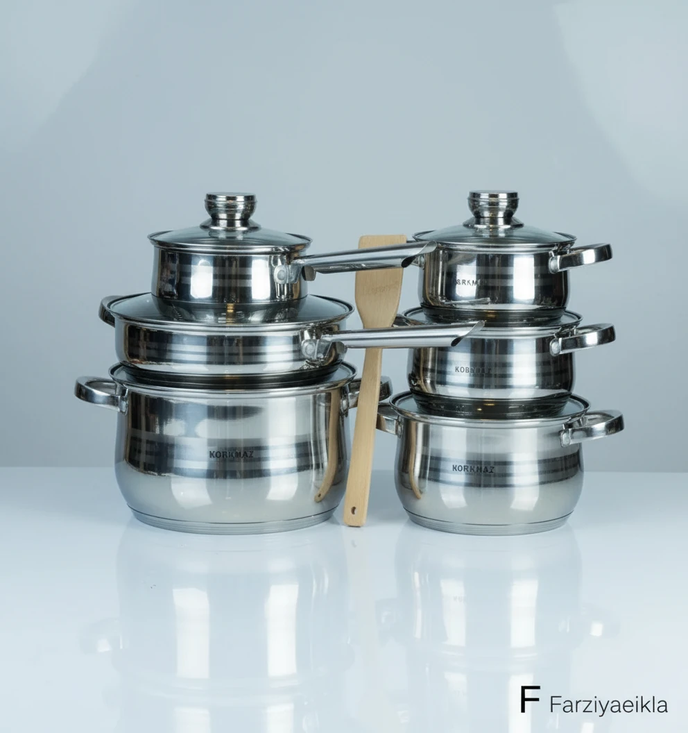 قابلمه استیل۴ سایز مختلف دارای شیر جوش و ماهیتابه کف حک شده ترکیه